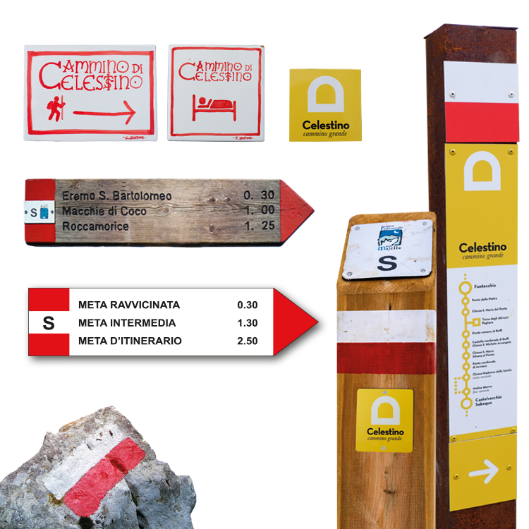 Il Cammino Grande di Celestino è interamente segnato seppur in modalità a volte differenti a seconda dei territori attraversati. La segnatura ufficiale è stata realizzata rispettando il senso di marcia che va dall'Aquila a Ortona, ma ovviamente il Cammino può essere liberamente percorso nelle due direzioni. Segnavia e bandierine rosse e bianche (segnaletica CAI) sono prevalenti sia a terra che nella segnaletica verticale lungo tutto il Cammino.